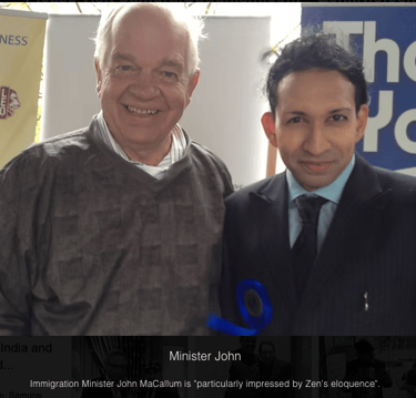 Zenji Nio has been praised by Canada's Minister of Finance and then Ambassador to China for his excellent public speaking skills that are "very impressive... the best he ever heard"