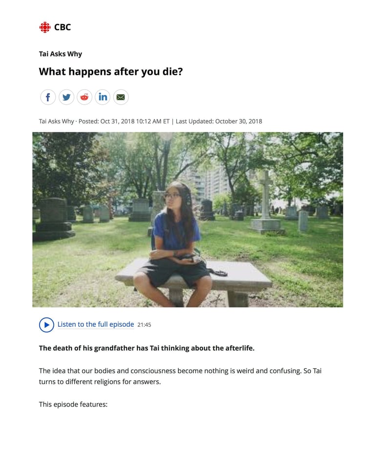 CBC interviews Zenji Nio as a major voice for Asians and Buddhists - and his views on the Buddhist approach to dealing with death and bereavement. Zenji Nio is often called to comfort people in their hours of need as he promotes a blend of both compassion with courage, of empathy with empowerment.