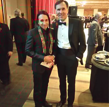 Zenji Nio and Canada's Minister of Finance were special guests at a Gala to celebrate the most influential Canadians. Zenji Nio is wearing his Samurai Buddhist insignia and discussed cool Asian and Buddhist concept with the Minister of Finance and the need to balance spirituality with materialism.