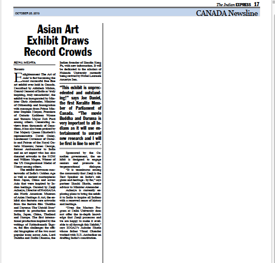 Indian Express confirms Zenji Nio's Samurai, Buddhist & Asian Art exhibit biggest in Canadian history