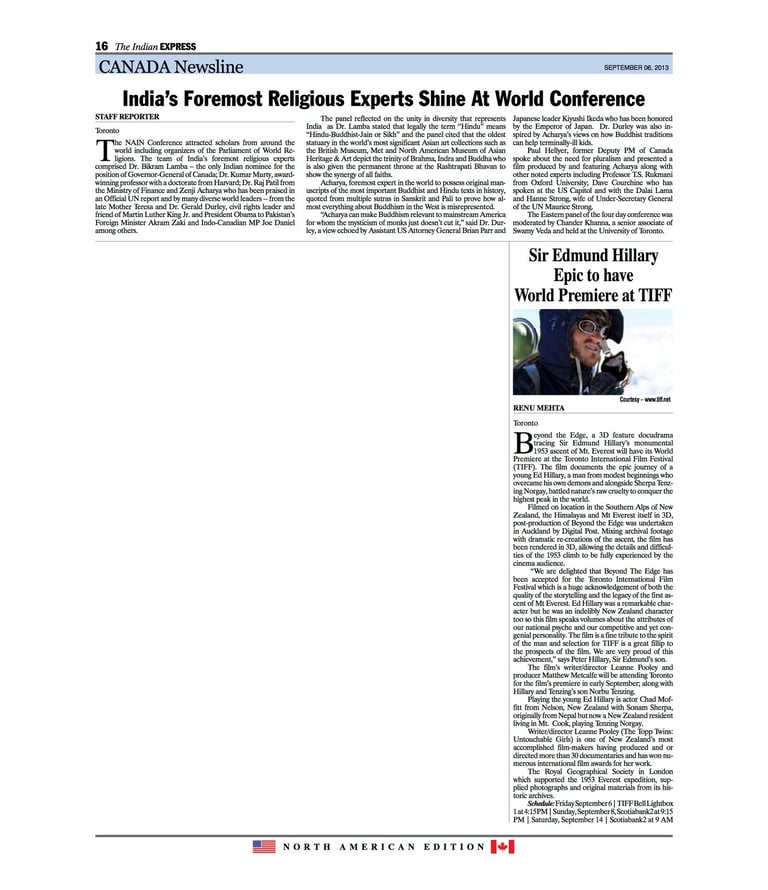 Indian Express hails Zenji Nio as foremost Buddhist expert in the world...