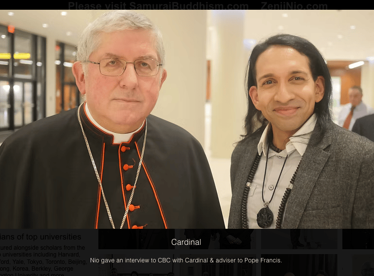 Zenji Nio has been invited to represent Buddhism at many events held by Jews, First Nations, Catholics, Christians, Hindus and Muslims. While Zenji Nio is strictly and exclusively Buddhist (like other religions, Japanese (Samurai) Buddhists are not allowed to endorse or partake in any other religious festivals as the Shogun and cardinal Buddhist texts ban the same), Zenji Nio has spoken at many events by interfaith leaders to represent Buddhism with accuracy and authenticity as the only Buddhist expert to know the original texts in Sanskrit and to have experienced Buddhism in all major nations including Japan, China and Korea -- the top 3 leaders of Asia -- as well as Sri Lanka and Thailand. While many textbook Buddhists spout cliches, Zenji Nio tells it like it -- in the way Buddhism is actually practiced by Asians that are 99% of Buddhists.